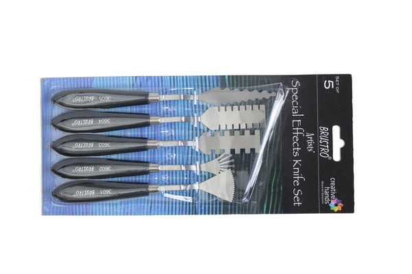 - Great assortment of 5 SPECIAL EFFECTS palette knives for Mixing, Spreading and Scumbling,