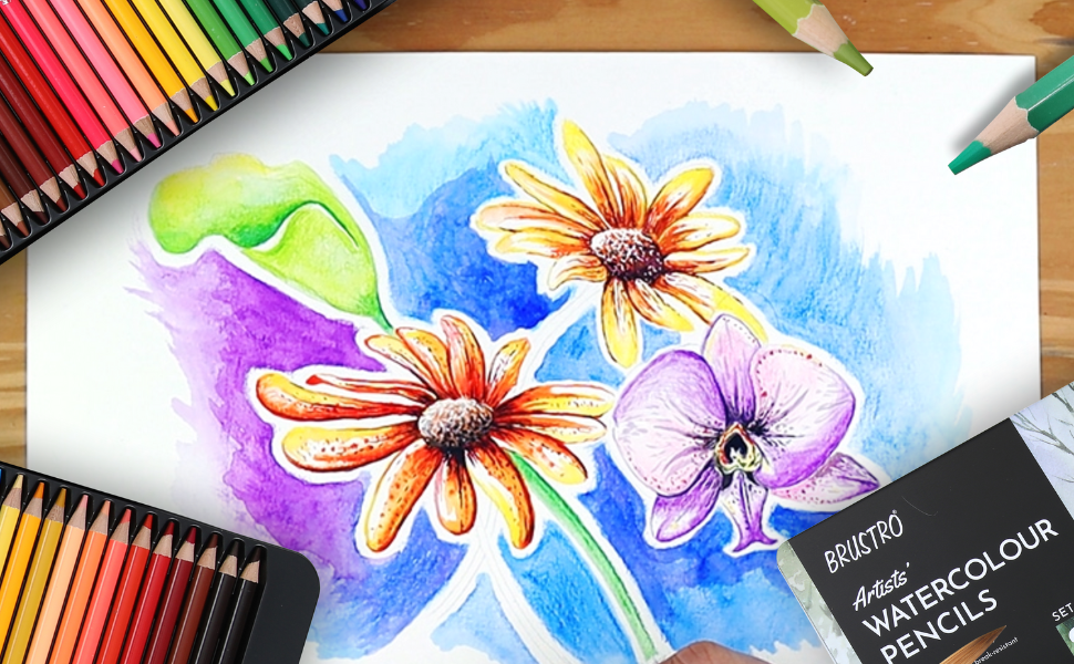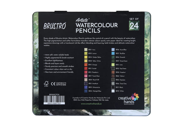 - BRUSTRO Artists Watercolour Pencil |Set of 24 (in Elegant tin Box)|Ideal for Artists, Students, Drawing,Colouring,Painting on Paper, water soluble, Professional Quality, Break-resistant,Vibrant Colors