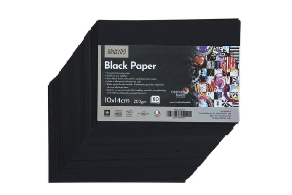 These Brustro Black Paper are Uncoated drawing paper. are Acid-free and lightfast black papers, Extra black sheets with uniform and deep black colour. Made of elemental chlorine free pulp. Works perfectly with metallic, fluorescents, gouache, oil pastels, inks and white gel pens. Ideal for various art and craft, doodling, mandala, scrapbooking, card making, calligraphy, presentations etc. Made in Italy,