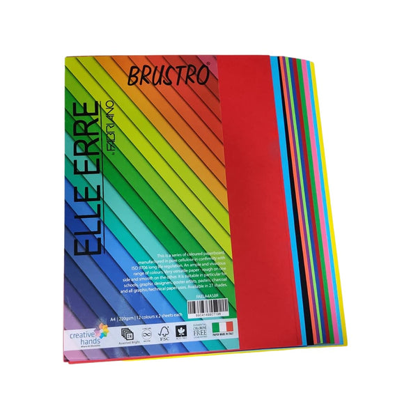 Brustro Elle Erre is a hard and rigid heavyweight card stock paper. This is a series of coloured paperboard, manufactured in pure cellulose in conformity with the ISO 9706 “Long Life” regulation. Produced with 100% of E.C.F. pulp (Elemental Chlorine Free), F.S.C. certified (1996 Forest Stewardship Council A.C.) from forests responsibly managed respectful of environmental, social and economic standards.