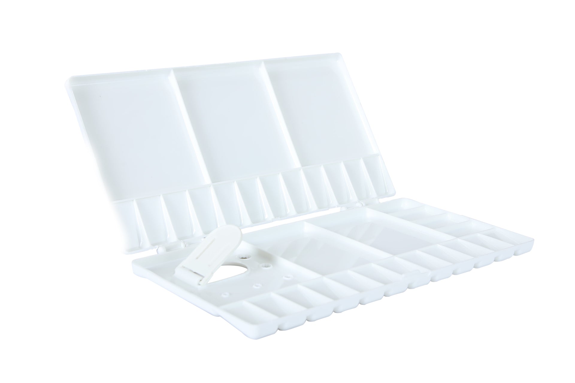 - The folding lid ensures that the paint does not need to be dry before packing away as well as adding more wells for different color mixing. Easy-clean surface.