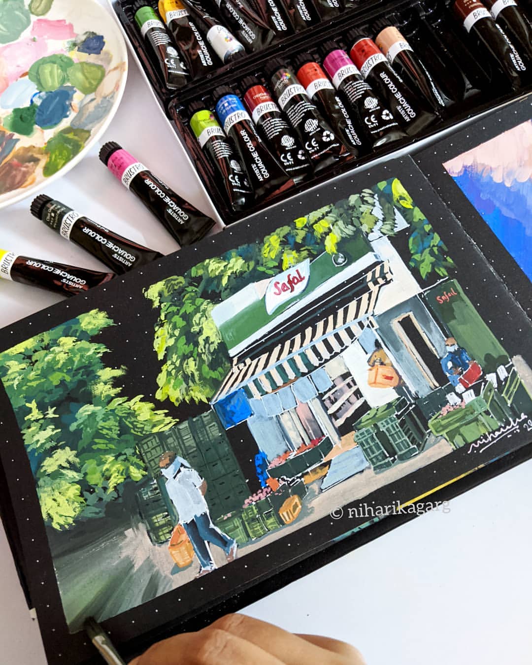 Brustro Gouache colours achieve its high opaque value by the high pigment load.
