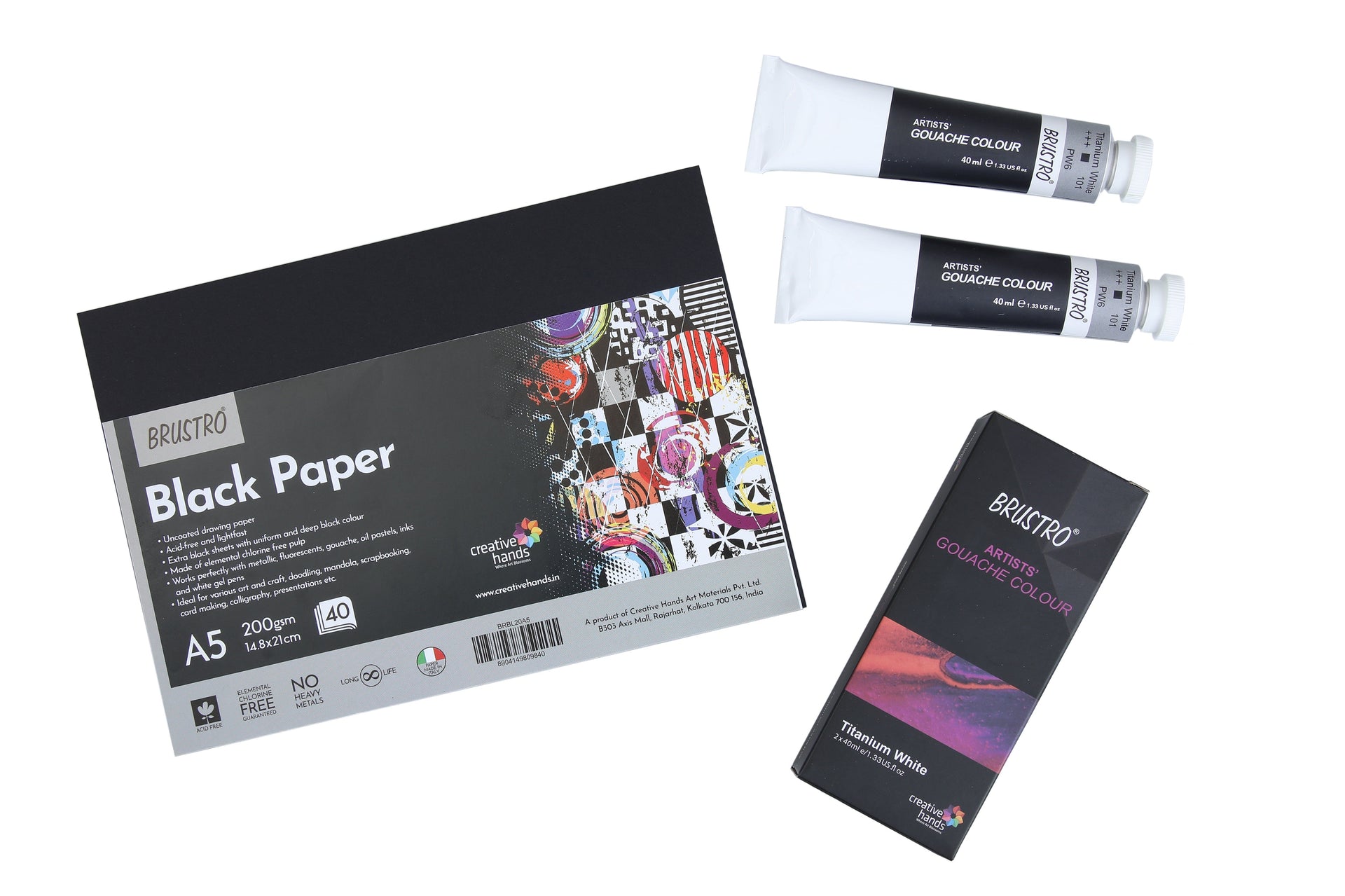 - Combo contains Brustro Gouache Titanium White 40ml(pack of 2) and Brustro Black Paper A5