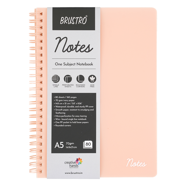 - Premium A5-sized notebook with 160 pages of 70 gsm ivory paper for a superior writing experience. Size - 14.8 cm x 21 cm / 5.8” x 8.26”
