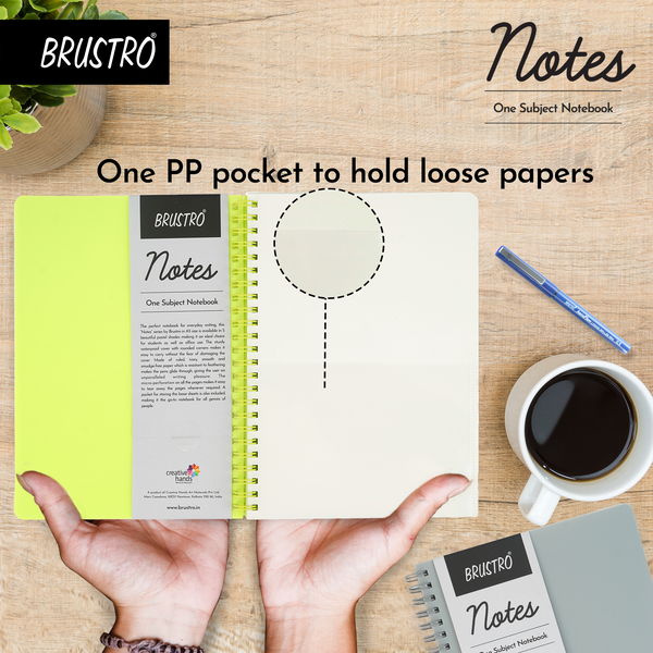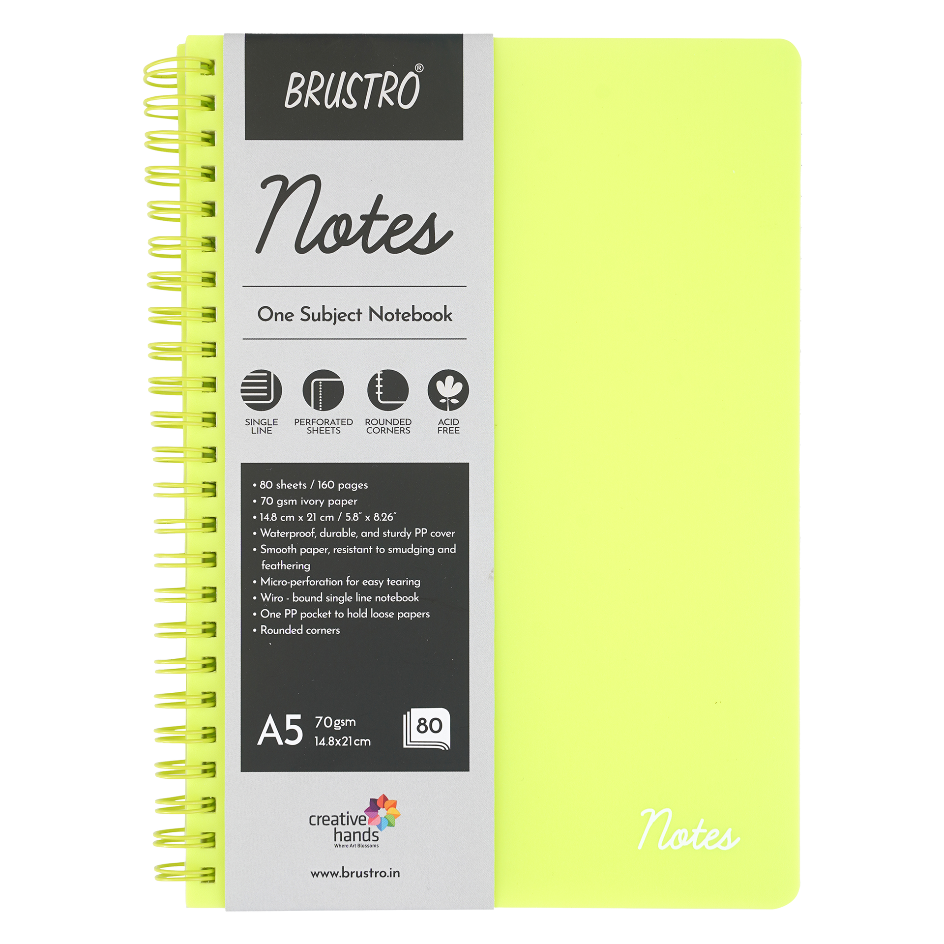 - BRUSTRO Notes A5 Size, 1 Subject Ruled Notebook, 80 sheets / 160 pages, 70 gsm ivory paper, Lime Cover,