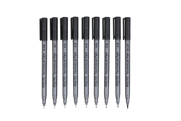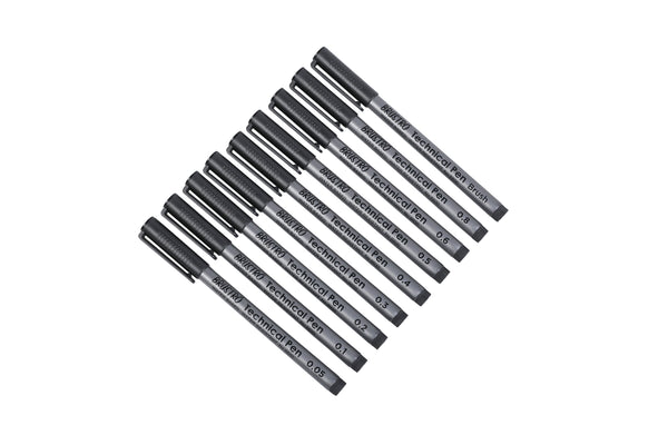 These quick-drying, pigment-based ink pens are great for anime, illustration, details, fine art, design, comics, modeling, journaling and papercrafting. Experience smooth, skip-free writing and crisp ink colors that leave consistent lettering and lines every time. Choose from the range of nine nib sizes for precise line widths: 0.05mm; 0.1mm; 0.2mm; 0.3mm; 0.4mm; 0.5mm; 0.6mm; 0.8mm & Brush. They are available both individually but also in a small selection of sets for anyone looking for a range of sizes to start off with. Assorted Sets of 9 Pens (Includes: 1 each of 0.05mm; 0.1mm; 0.2mm; 0.3mm; 0.4mm; 0.5mm; 0.6mm; 0.8mm & Brush.)