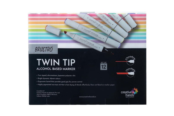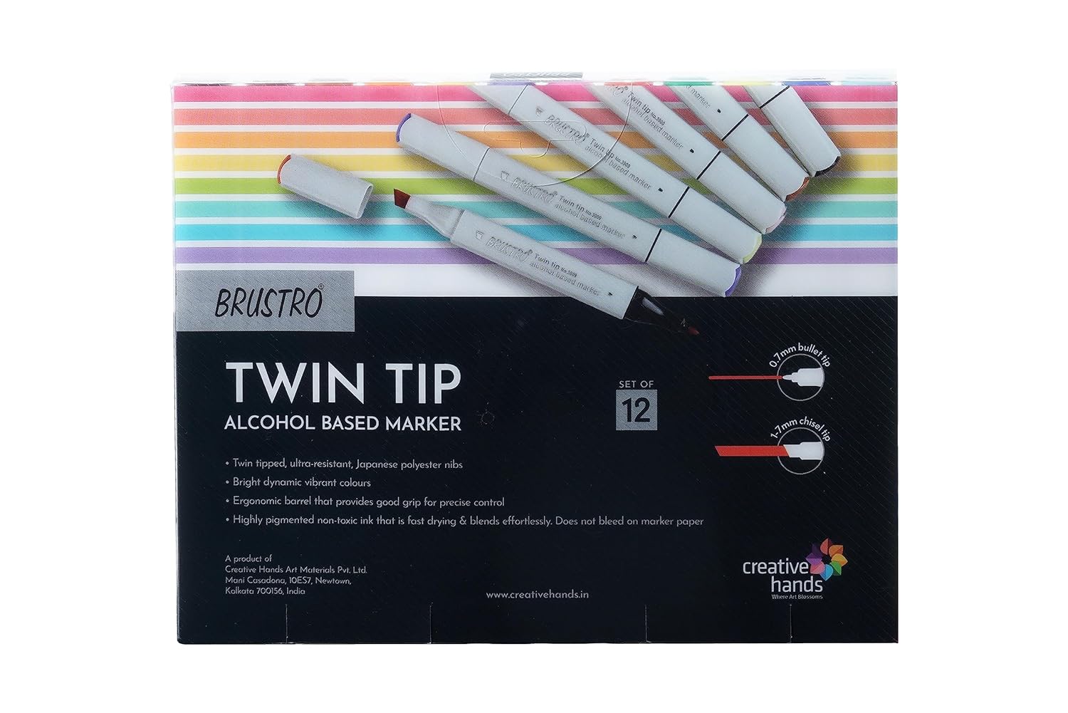 BRUSTRO Twin Tip Alcohol Based Marker Set Of 12 - Basic C in Crossline PP See Through Box