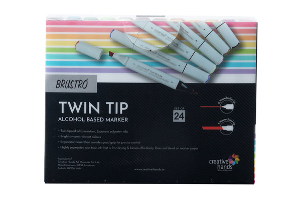Brustro Twin Tip Alcohol Based Marker Set of 24 (C) in Crossline PP See Through Box