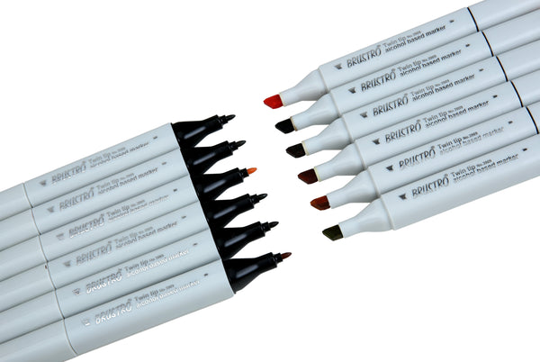 - BRUSTRO Twin Tip Alcohol Based Marker Sets Earth Tone (12) in Crossline PP See Through Box
