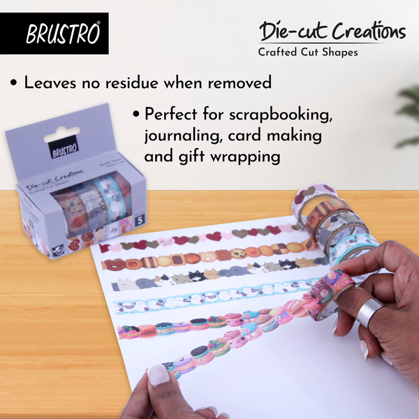 Introducing Brustro Washi Tapes – Die Cut Creations, a pack of 5 uniquely crafted tapes designed to elevate your DIY projects. Each roll measures 15mm x 3m and features beautifully die-cut shapes, perfect for adding a creative touch to scrapbooking, journaling, card making, and gift wrapping. These tapes are eco-friendly and easily tearable by hand, making them both convenient and sustainable. The low-tack adhesive allows for easy repositioning and ensures that no residue is left behind when removed. Versatile and stylish, these washi tapes are an essential addition to any crafter’s toolkit, offering endless possibilities for artistic expression.