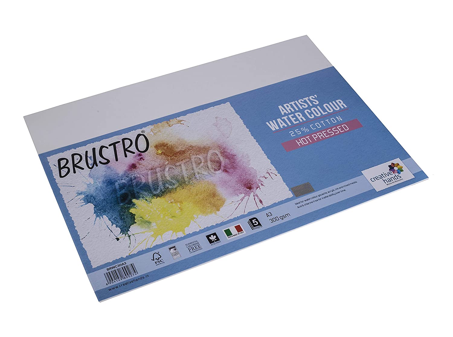 - Brustro Watercolour Papers 25% Cotton HP 300 GSM A3 , 2 Packets (Each Packet Contains 5 sheets)