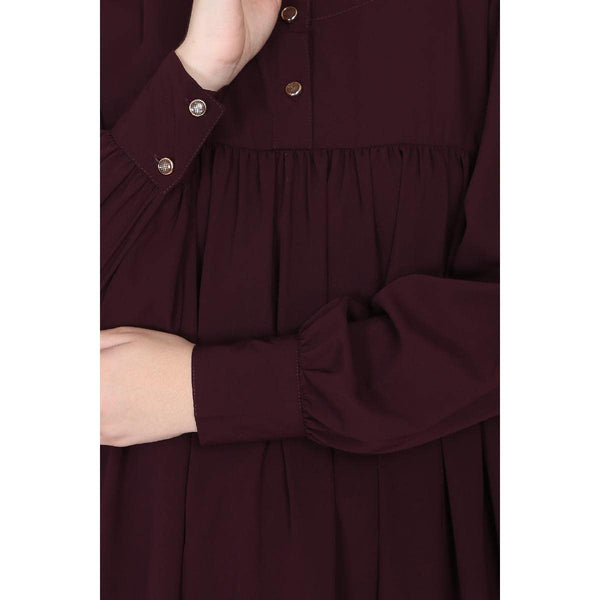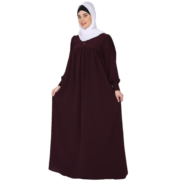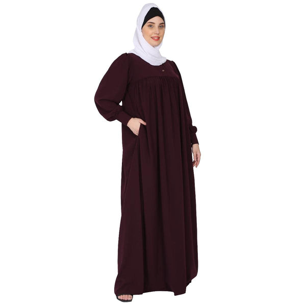 An abaya that has a perfect balance of looks and comfort. Use it as a dress or a burqa as per your choice. It has Cuff and gathers from Yoke to give you maximum comfort. This article is made of Nida Matte fabric which is very Soft, Breathable, Light Weight and easy to maintain. It gives a good fall to the garment.