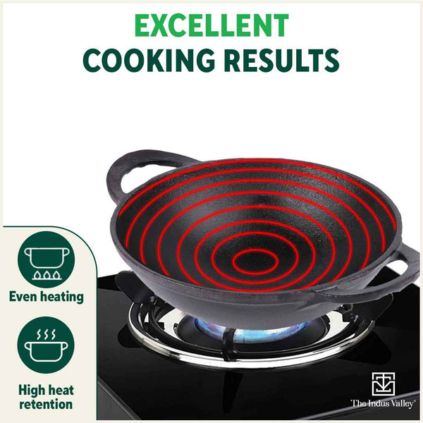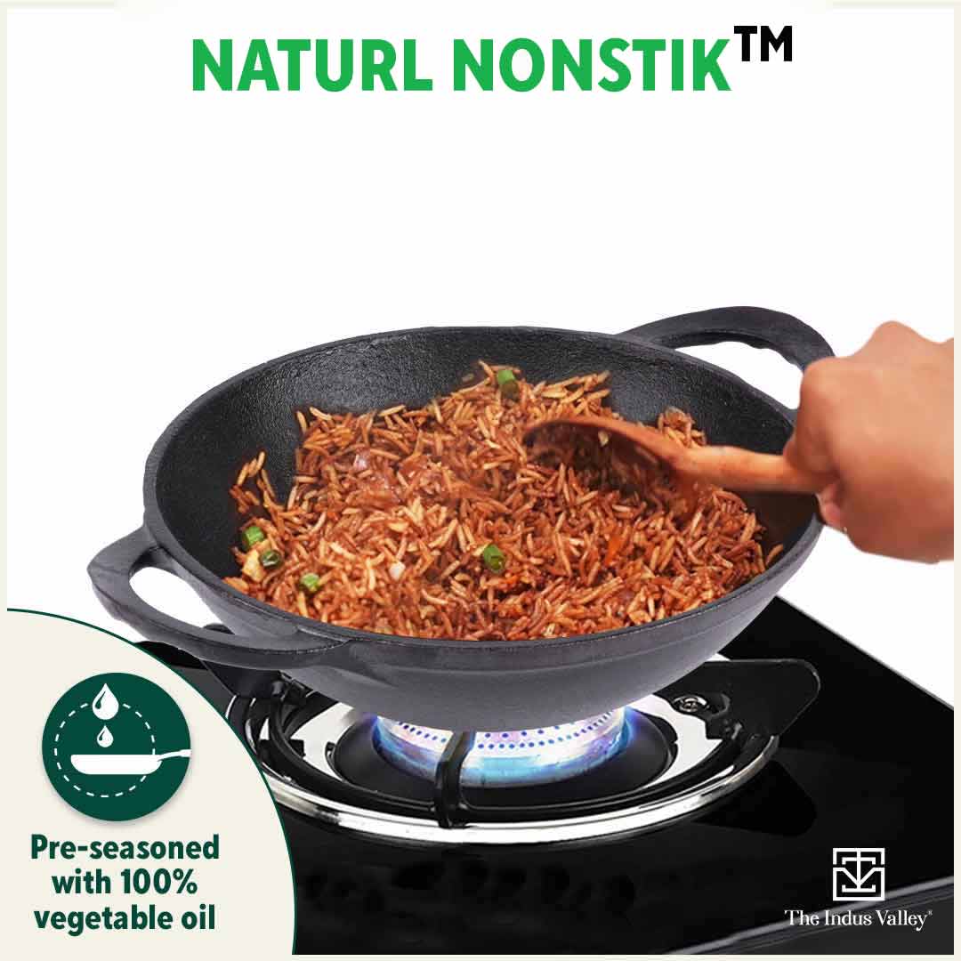CASTrong Cast Iron Cookware Set - Kadai [1.4L]+Kadai [2.2L],Pre-seasoned,100% Pure,Toxin-free