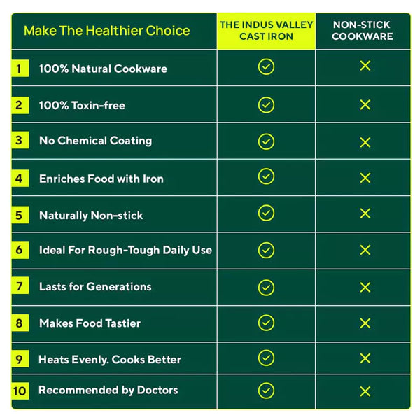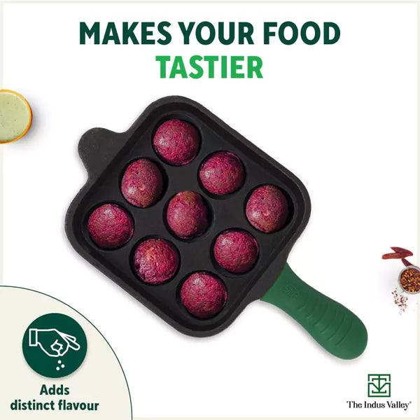 πΏ100% NATURAL & TOXIN-FREE: The Indus Valley Pre-seasoned Square Cast Iron Paniyaram/Appe Pan (with long handle) is made from pure cast iron. It is 100% food-safe, toxin-free, that is, without harmful chemical coating.