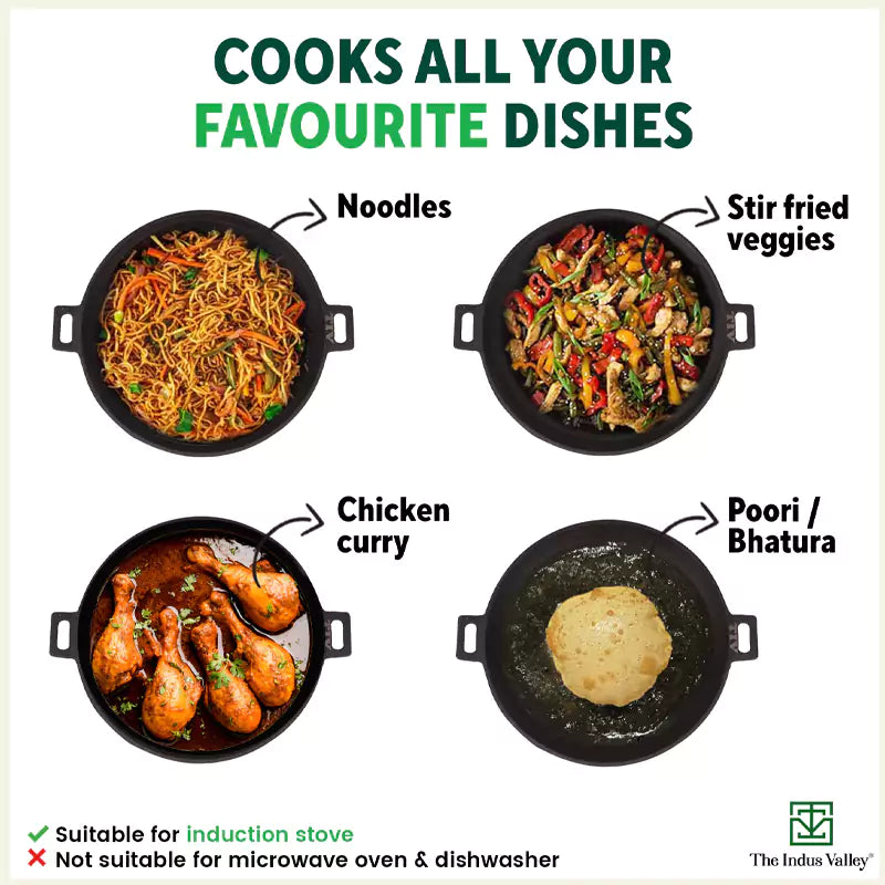 😎THE BEST CHOICE: So if you are looking to buy wok online that is reliable and durable for a lifetime, or a wok kadai for everyday use, then The Indus Valley cast iron kadai is just right for you! At The Indus Valley, trust to get the best cast iron chinese wok price in India!