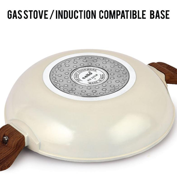Cello's Castello Die Cast Non-stick Kadhai offers a convenient and hassle-free cooking experience. Its specially coated surface allows food to release effortlessly, reducing the need for excessive oil or butter. This makes cooking and cleaning a breeze. The durable construction ensures long-lasting performance, while the comfortable handles offer a secure grip. Whether you're frying, sauteing, or simmering, a nonstick Kadhai is an essential kitchen companion for efficient and enjoyable cooking.