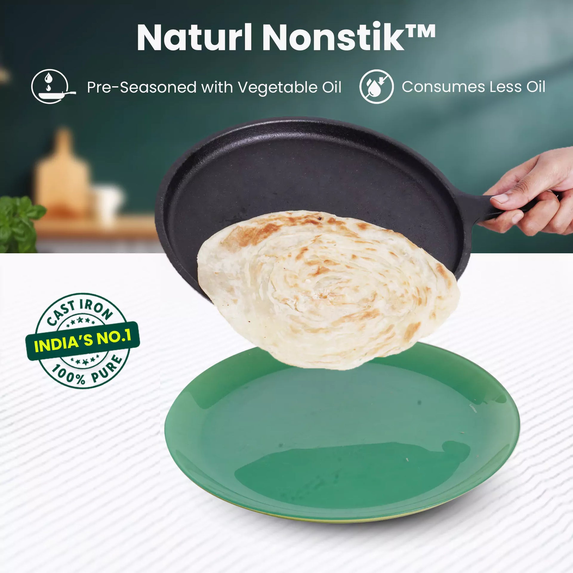 π³COOKS ALL YOUR FAVOURITE DISHES: The pre seasoned cast iron kadai is ideal for making dal, sabzi, paneer masala, samosas, etc. The cast iron tawa is useful for making dosa, roti, paratha, omelette, etc. Whereas the cast iron skillet or frying pan is ideal to make paneer tikka, chicken curry, sandwich, etc.
