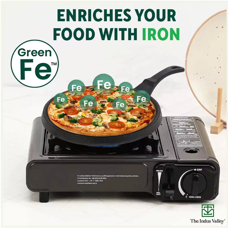 CASTrong Cast Iron Tawa, Silicon Handle,Pre-seasoned, Nonstick, 100% Pure, Toxin-free, Induction, 25.5cm, 2.2kg