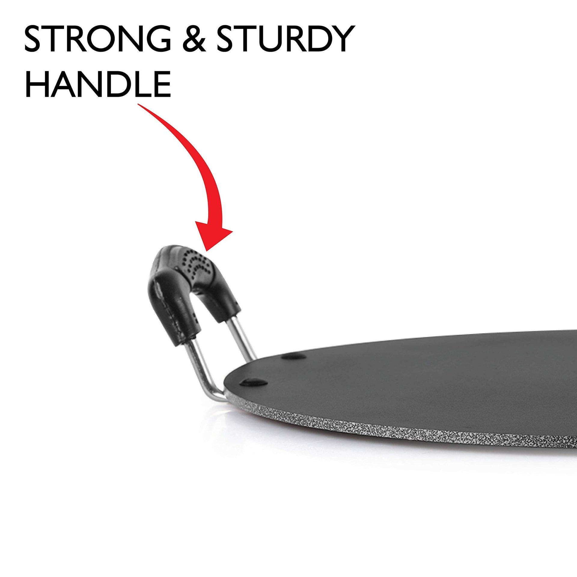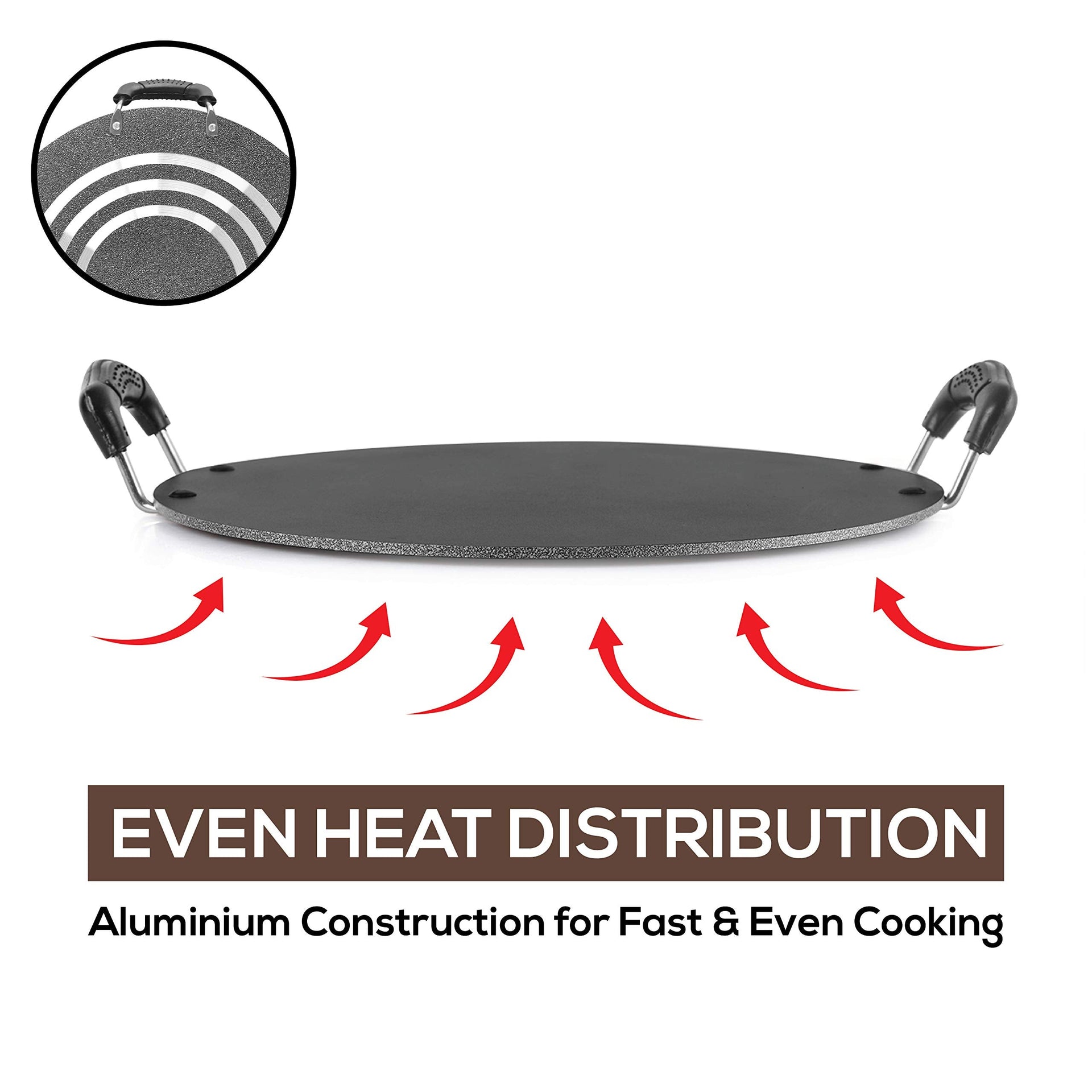 Cello Aluminium Non-Stick Patri Tawa Round, 30cm, Black and Grey | Induction base Flat Tawa | Dosa Tawa, Roti, Paratha, Chapati Tawa