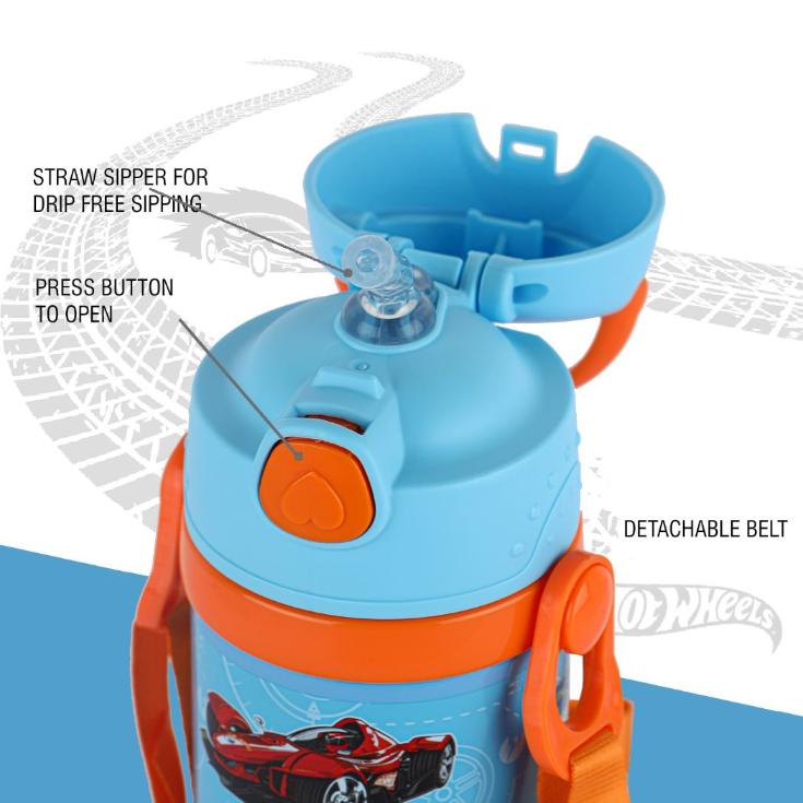 Introducing the Champ 400 water bottle by Cello Kidzbee, perfect for kids who are always on the go! With a 400ml capacity and cool designs like Tinker Bell and Spiderman, it's both fun and functional. Available in Yellow, Red, Blue, and Sky Blue, it's easy to match your style. The push-button straw sipper and adjustable neck strap make it easy to use and carry. Plus, the double-wall vacuum insulation keeps drinks cool on hot days. Its wide cap and flip top ensure a leak-proof seal, even when on its side. Stay hydrated, cool, and stylish with the Champ 400 water bottle!