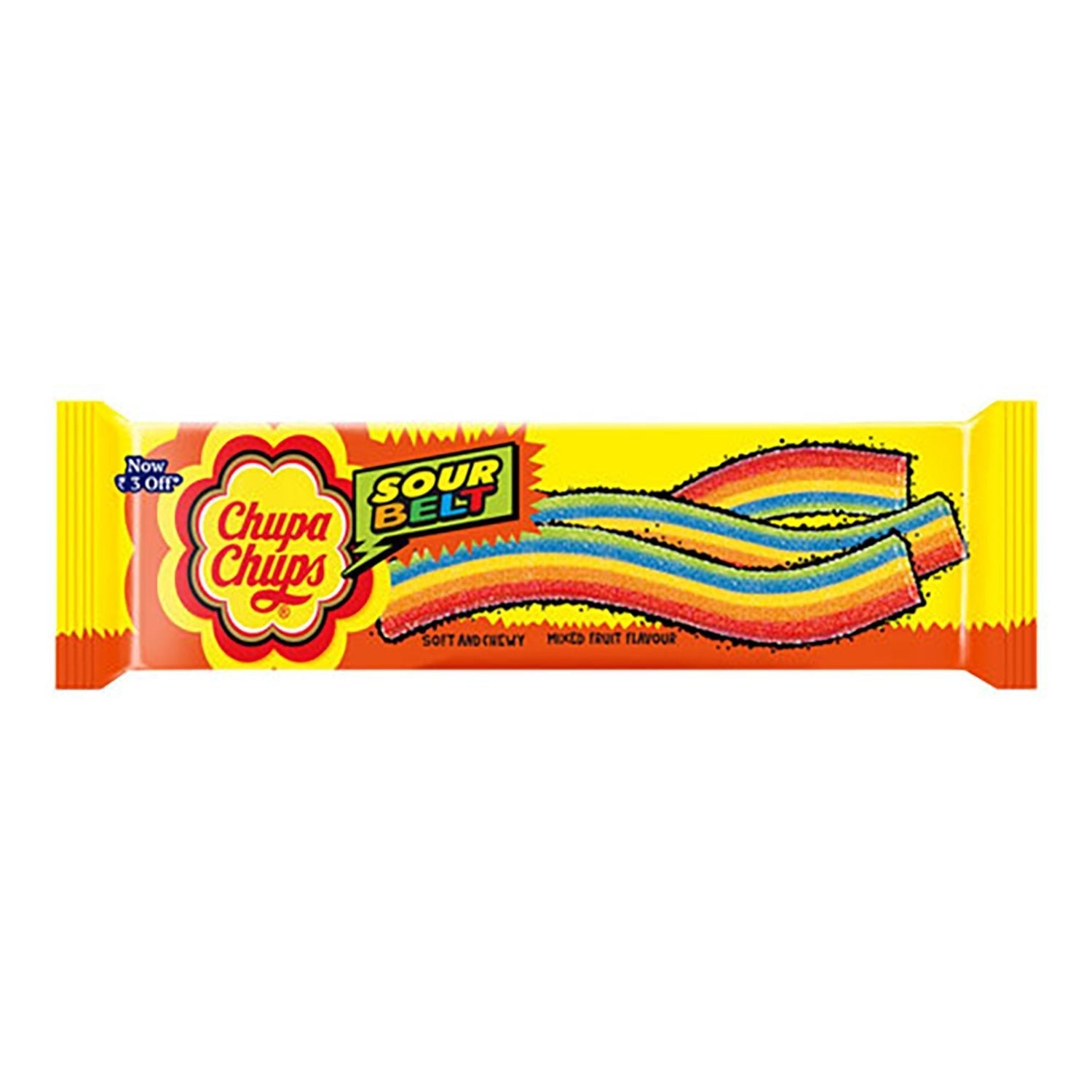 Details: Ready for some serious fun with your friends? Hurry! Grab a pack of 12 Chupa Chups Sour Belts, Chewy Toffee, 8 belts in each pack. Multicolored belt shaped product available in mixed fruit flavor. The tray pack makes it very convenient to store & share. A great pack to share and have some serious fun! This Product is 100% Vegetarian