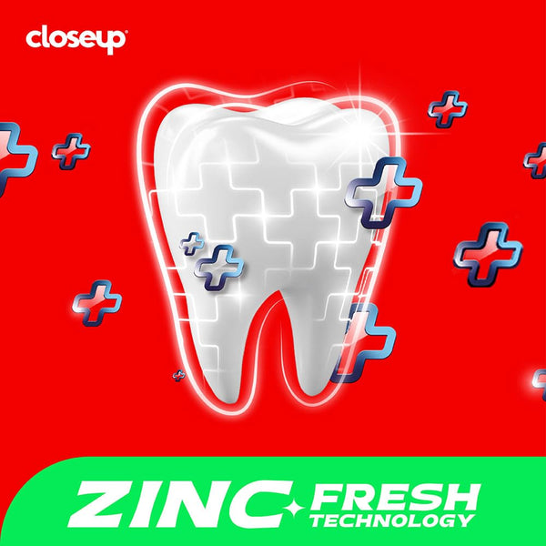 Details: Do you brush your teeth hurriedly? Do you often forget to use mouthwash or not use it at all? Are your teeth dull and covered with a yellowish coating of plaque? Do you have bad breath? If your answer to the above questions is yes, then New Closeup Gel Toothpaste with Zinc fresh technology is for you! Bad breath is a common condition that affects many people and has health as well as social implications. It can be caused by the millions of bacteria that live in your mouth. If you don't brush everyday plaque & germs can form resulting in bad breath. Closeup Gel Toothpaste has Zinc Fresh Technology which fights against 99% germs to give you 18 hrs of long-lasting fresh breath. Its proprietary technology gives intense freshness & burst of minty cooling. So, kiss goodbye to bad breath and say hello to longer lasting fresh breath for up to 18 hours*. Its purifying gel cleans to the deepest corners of your mouth. It also contains natural extracts of tea tree and eucalyptus which leave you feeling refreshed. Add Closeup Red Gel Toothpaste with Zinc Fresh Technology to your daily oral care routine and step out into the world with confidence! *Based on in- vivo study with regular use over 4 weeks.