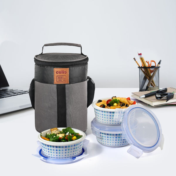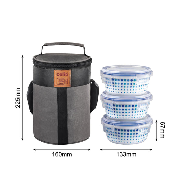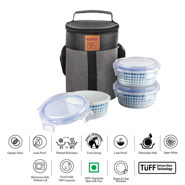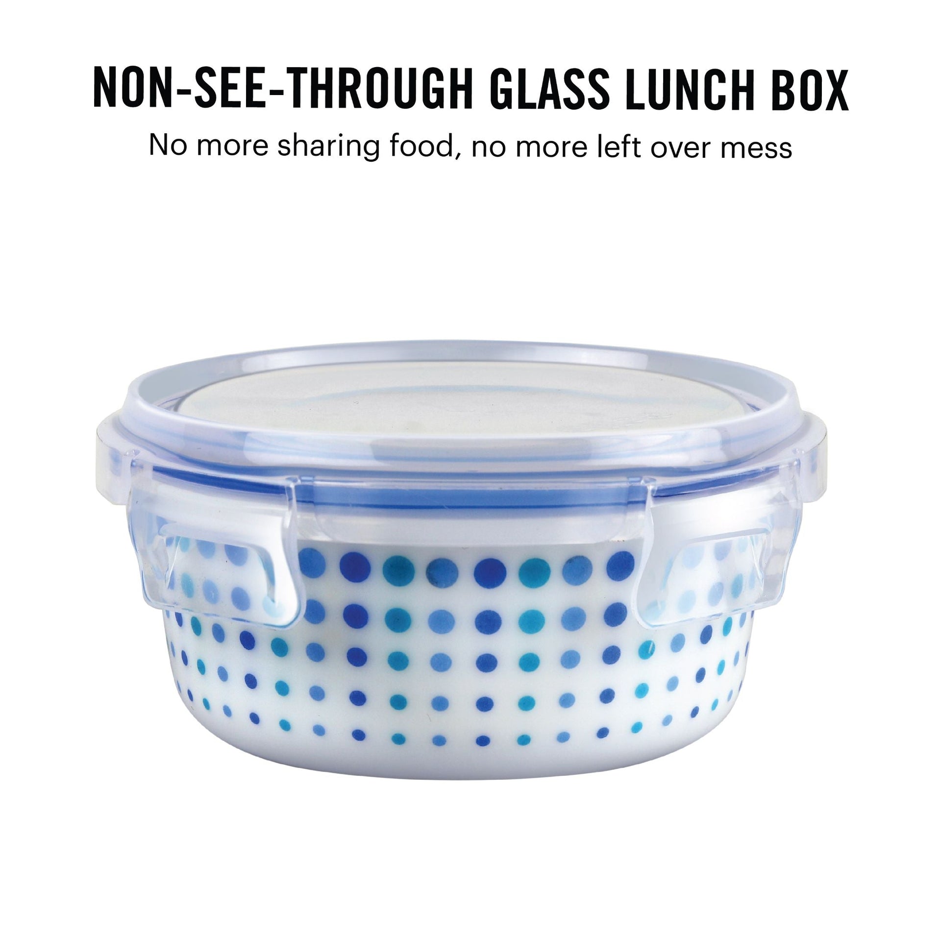 The Cool Dots Opalware Lunch Box with Jacket is designed to enhance your dining experience. Crafted from non-see-through Opal Glass, it guarantees privacy by preventing any unwanted glances into your meal. Its food-grade quality ensures safety, and it's a breeze to clean, compatible with both microwave and dishwasher use.