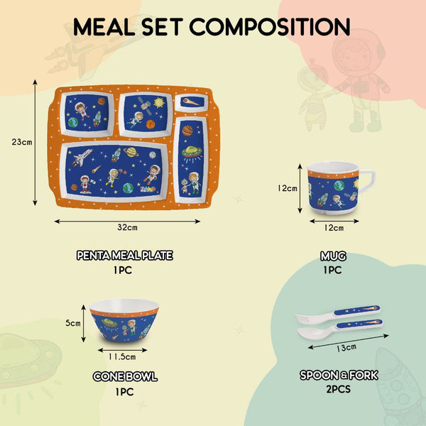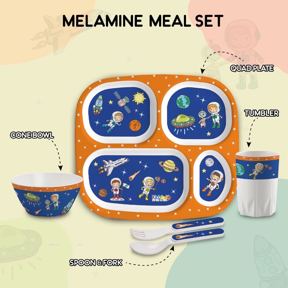Product Description Introducing the Kidzbee's Melamine collection Set of 5 seamlessly blends safety and style for your little ones. Not only visually appealing, but they also ensure shatterproof reliability and dishwasher safety. The designs are printed with food-grade ink, prioritizing your child's safety during mealtime. Kidzbee's Melaware is not just a delightful addition to your table. It's a promise of trust and a happy, healthy dining experience for your kids! Kidzbee Trioplate comes with a Plate, Bowl, Mug, Fork, and Spoon.