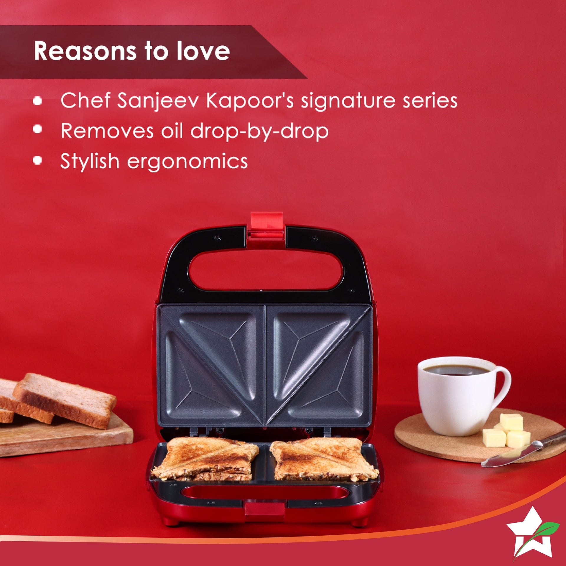 Crimson Edge Non-Stick Electric Griller,Sandwich Maker, Toaster |750 Watt| Auto Temp, LED indicator| Cool Touch Handle, Buckle Clip Lock| Grill Sandwiches, Bread, Kebabs, Paneer,Tikkis and Quesadillas| Oil Free Toasting| 2 Year Warranty