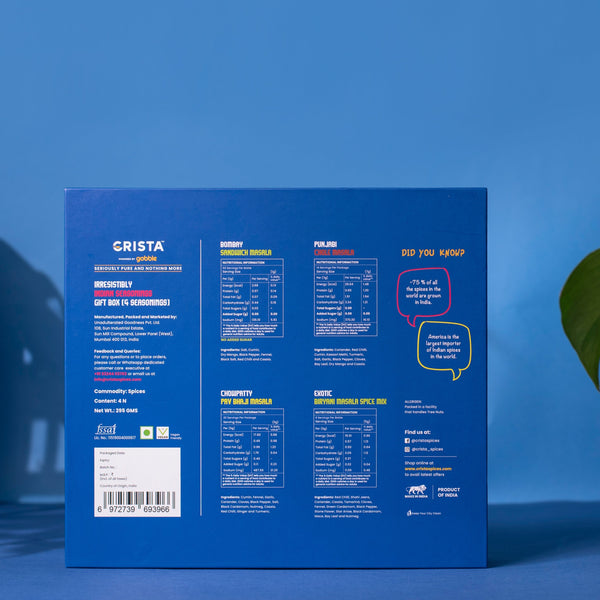 CRISTA Irresistibly Indian Seasonings Gift Box| Box of 4| Festive Gift| Pure Spice Gifting: 295 gms