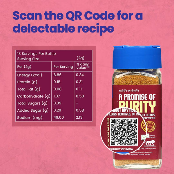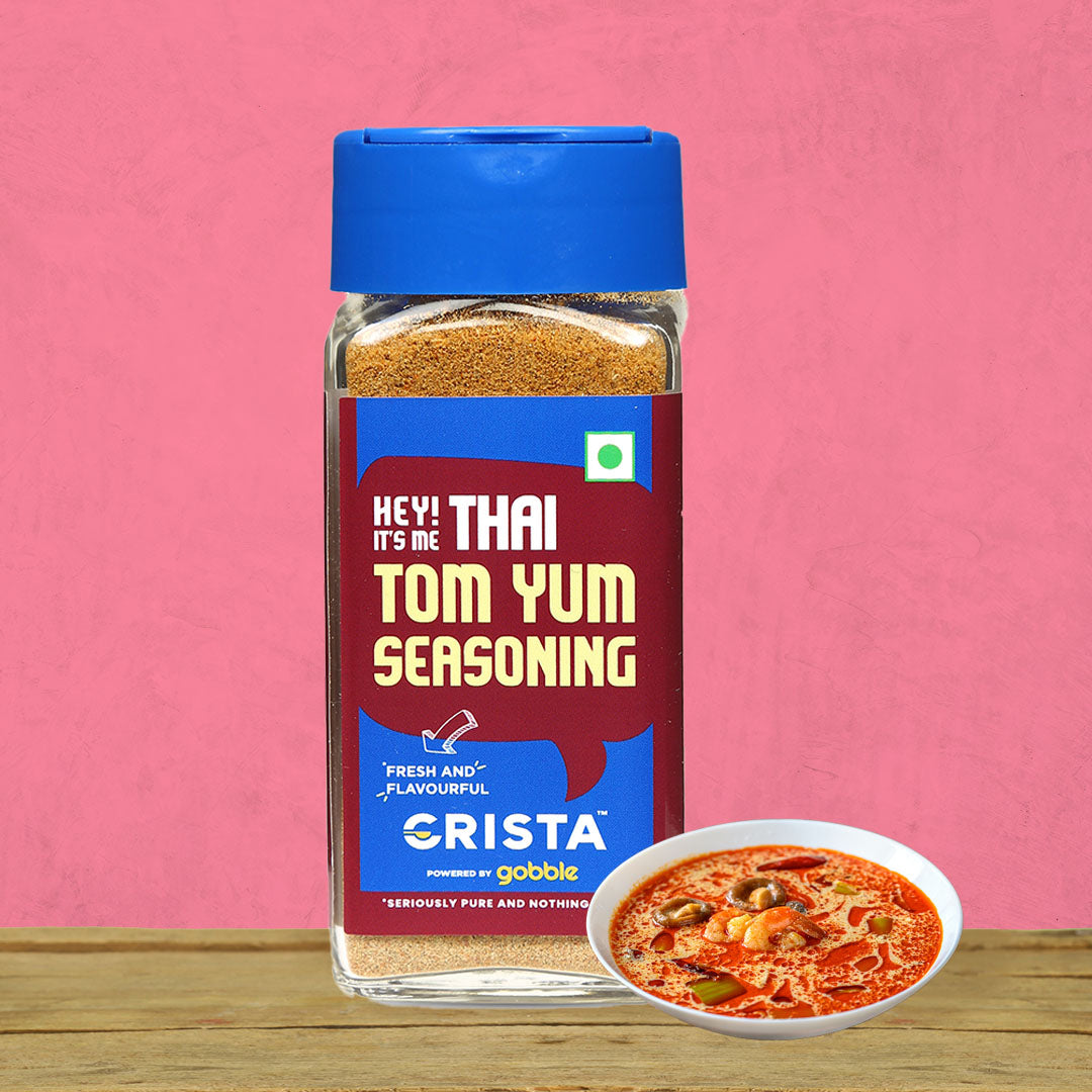 Hey! Its me Thai Tom Yum Seasoning. Originating in Thailand, CRISTA Thai Tom Yum seasoning is a versatile seasoning designed for the modern Indian consumer yearning for explosions of complex flavour in a variety of Asian dishes. Most commonly used in Tom Yum soup, this hot and sour flavourful seasoning is a must have for your spice cabinet and can be enjoyed across a range of Thai dishes including salads, noodles and Thai entrées. In keeping with new age trends of modern experimental cooking, this multipurpose seasoning has been used across wider Asian cuisines and dishes. Freshly machine ground using our sophisticated hammer crushers and micro pulverisers, the blend is mixed in an automatic GMP blender to achieve the desired balance and consistency.
