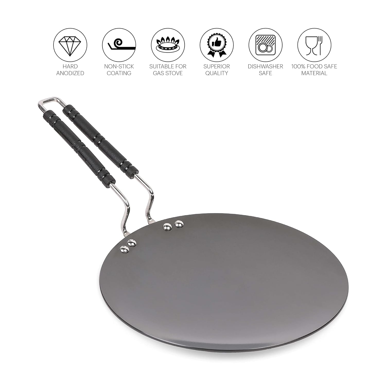 The superior American heritage Dupont non-stick coating promotes healthy cooking by eliminating the need for excess oil or butter. With a high-quality Hard Anodized coating, this cookware is not only scratch-resistant but also durable, non-toxic, and non-reactive, ensuring great heat distribution.