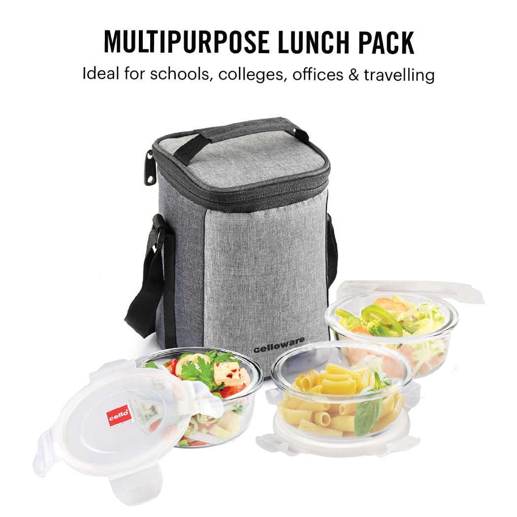 Elevate your lunchtime experience with the Delighta Borosilicate Glass Lunch Box by Cello. The airtight lids with a 4-way locking mechanism and silicone gasket keep your food intact and moisture-free. Plus, these containers are microwave and refrigerator safe, allowing you to enjoy hot meals instantly or store leftovers with ease. With its premium and trendy design, this lunch box is the ideal companion for both office goers, making it a must-have for anyone looking to carry their meals conveniently and securely.