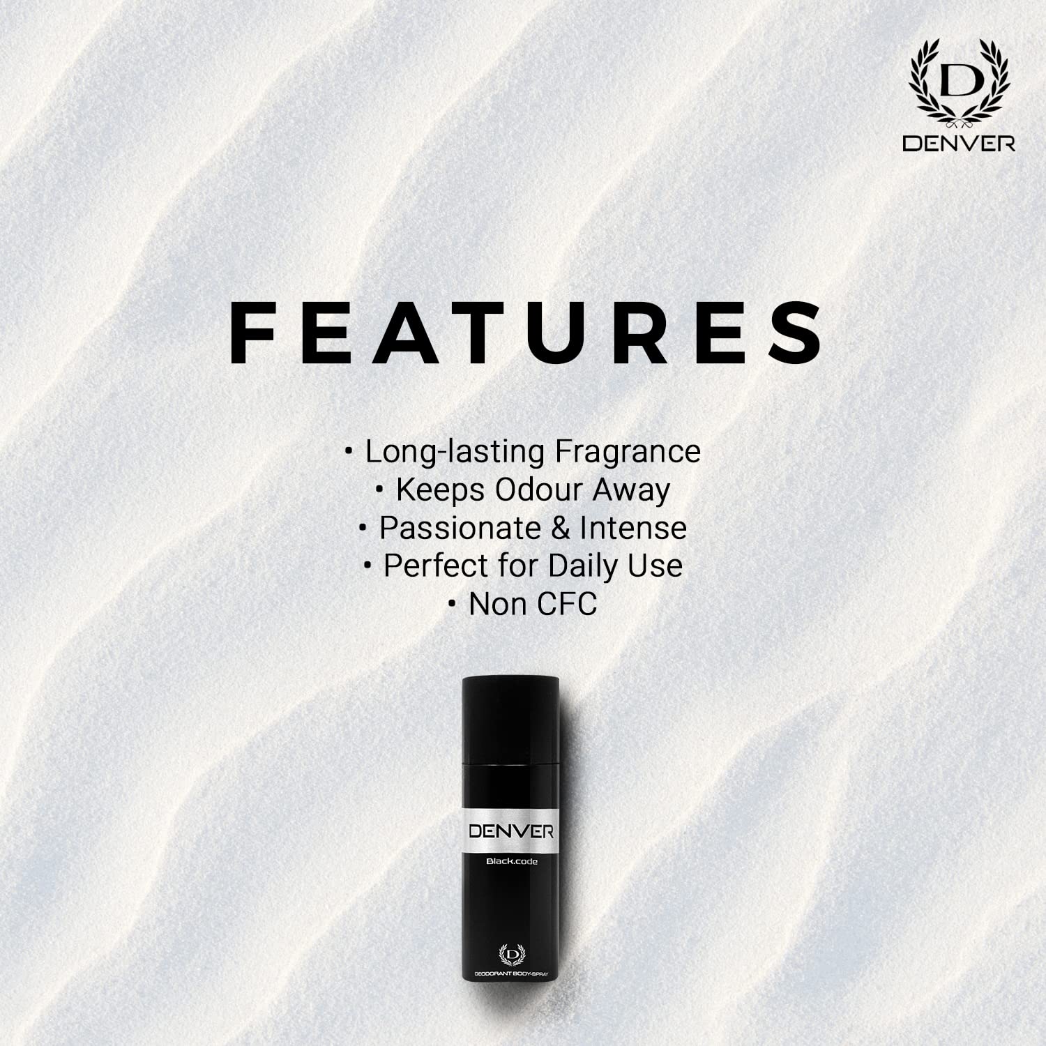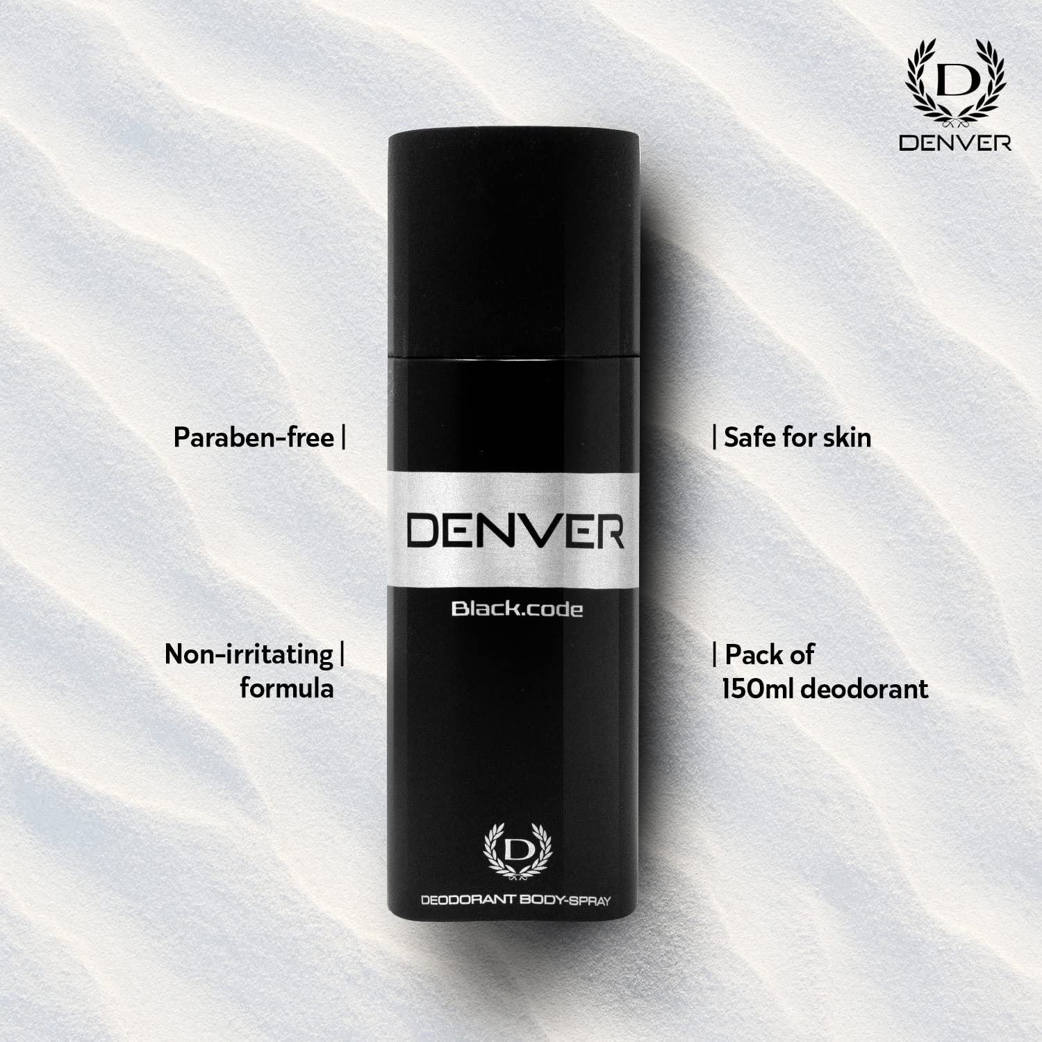 Denver Black Code Deodorant Aerosol For Men (150Ml Each) - Pack Of 2 | Long Lasting Deo For Men