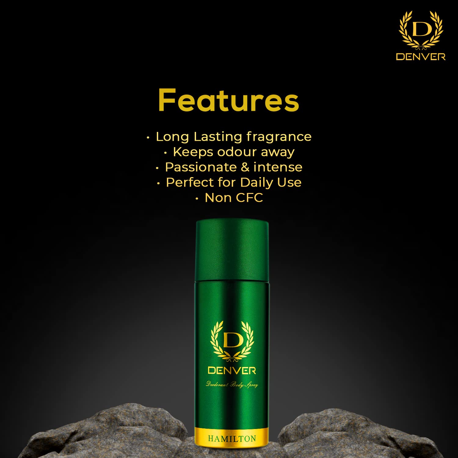 Details: Deodorant which is a personal care product used to prevent body odour. Deodorants are available in various forms such as sprays, roll-ons, sticks etc. Men's deodorants are specifically formulated to address the body odor concerns of men, who typically sweat more than men. Some deodorants may be designed to provide a long-lasting protection against sweat and odor. DENVER deodorant body spray for men with a carefully blended fragrance mix and long lasting deo protection against body odours, to keep you delightfully fresh and confident throughout the day.