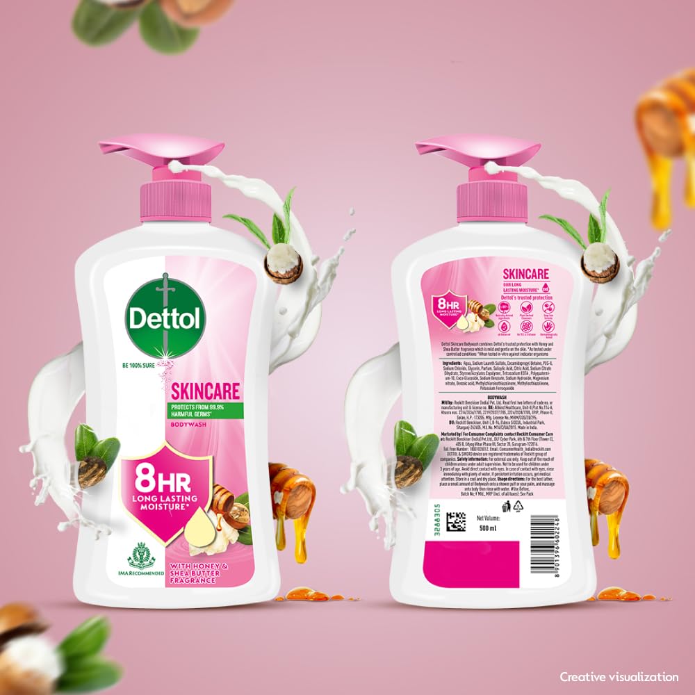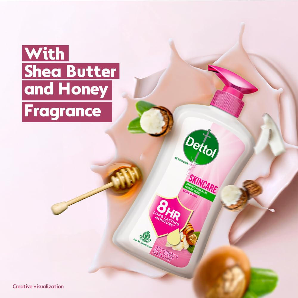 Details: Dettol hygiene body wash Skincare combines Dettol’s trusted germ protection with honey and shea butter fragrance and leaves your skin feeling soft. Dettol Skincare body wash gives you 8 hour complete odour protection. Dettol’s soap free formula body wash is made from naturally derived ingredients and plant derived cleansers. Honey and shea butter hydrates and energized the skin. Leaves skin feeling soft and nourished. It is Dermatologically tested and IMA recommended. Ideal For Men & Women.