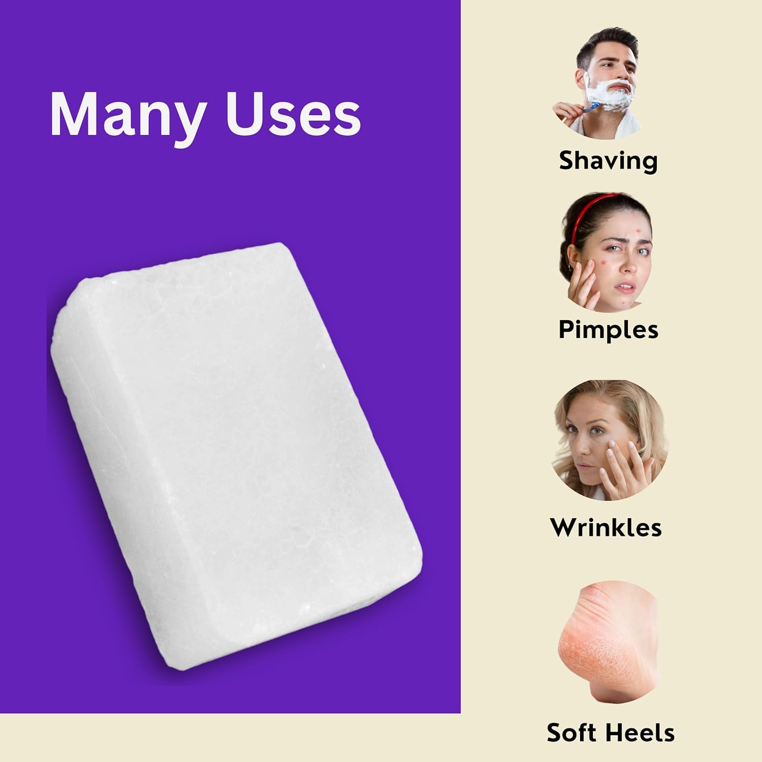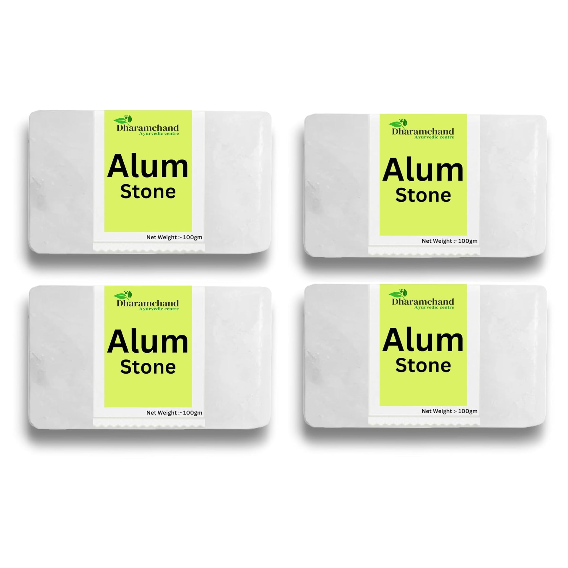 Dharamchand Alum Stone Bar 400g Natural Fitkari Stone for Skin Tightening & Water Purification | Crystal White Alum Bar for Underarms & Shaving | Gentle & Effective Pack of 100g x 4