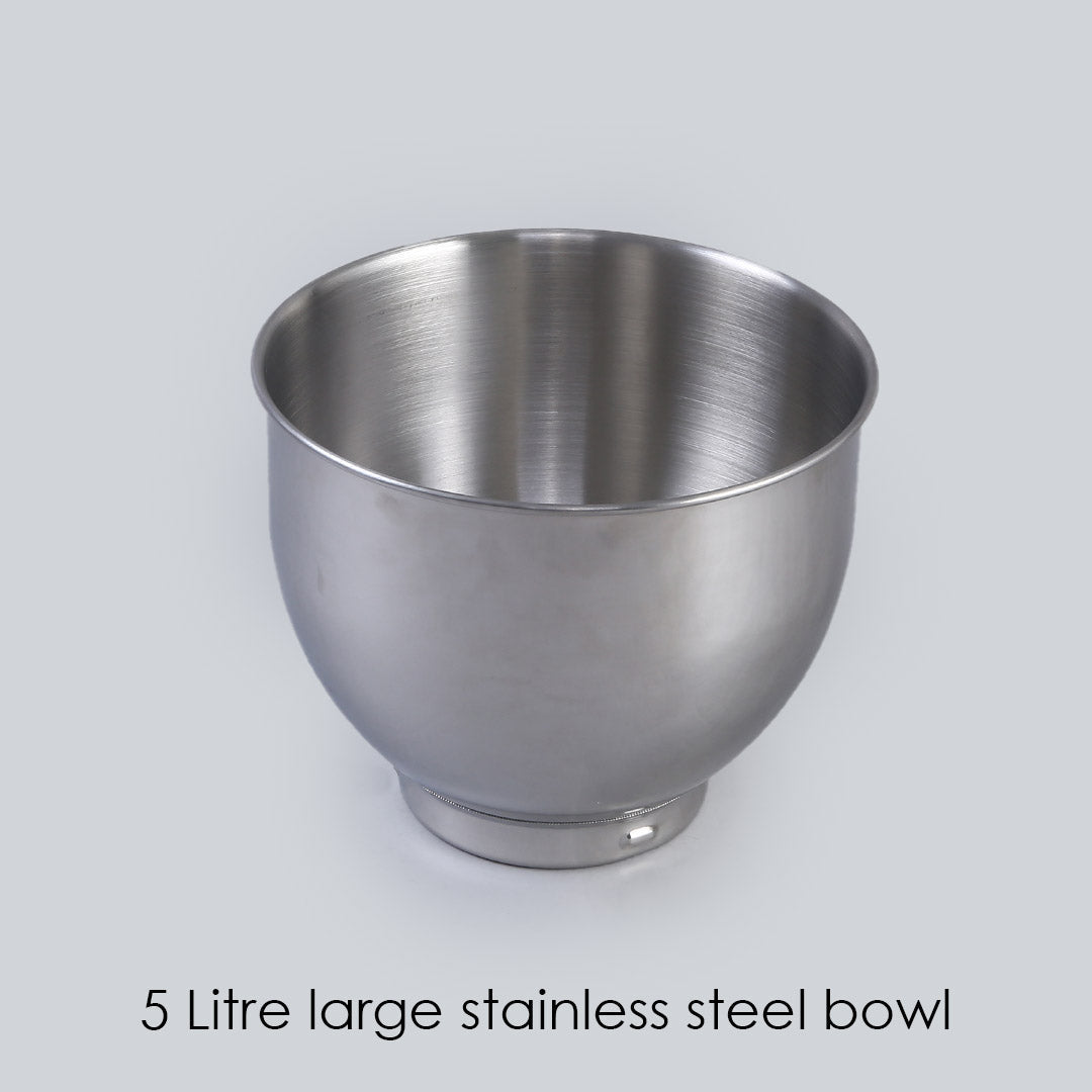 - LARGE CAPACITY BOWL(5 Litre): The spacious 5-litre stainless steel bowl allows you to cook in larger quantities. Whether you're hosting a gathering or preparing for a house party, this bowl provides ample capacity for your baked delicacies. The included bowl cover makes pouring easier and protects your food from splashes, ensuring a mess-free mixing experience.