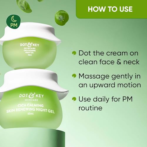 Dot & Key CICA Calming Skin Renewing Night Gel | For Oily, Acne Prone And Sensitive Skin | Night Cream with Niacinamide, Green Tea & Hyaluronic | Fades Blemishes & Dark Spots | 60ml