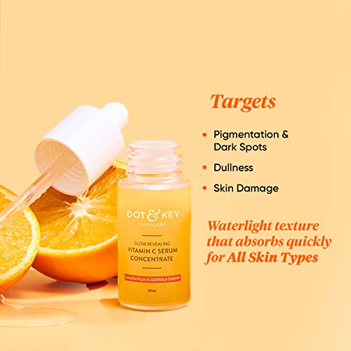 Dot & Key Glow Revealing Vitamin C Serum Concentrate with Kakadu Plum & Acerola Cherry | Face Serum for Dark Spots, Pigmentation & Dull Skin | 30ml