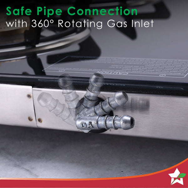 Duralife Slim Glass Cooktop 4 Burner | Heavy Duty Pan Support | Dual Locking System | Easy Grip Sleek Knobs | Brass Burner | Round Stainless Steel Drip Tray | 2 Years Warranty on Glass and Product