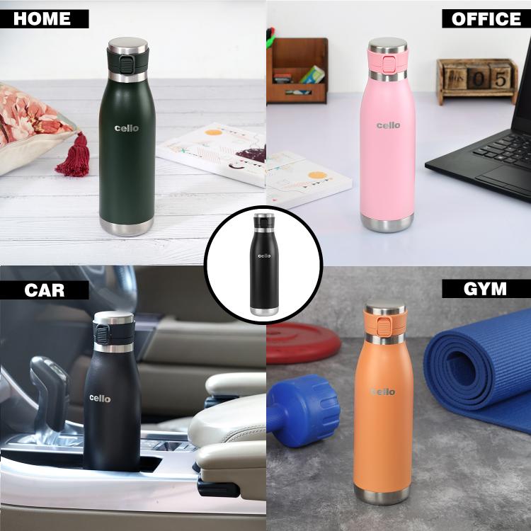 For the adventurer at heart, Cello presents the Duro Series of Tuff Steel insulated bottles that you can easily carry with you on treks, hiking, cycling, to the gym, school, or office. Designed with new and advanced DTP coating the long lasting color of the bottles will not fade or scratch with use. Enjoy an active lifestyle while your bottle stays brand new, even with everyday wear and tear.