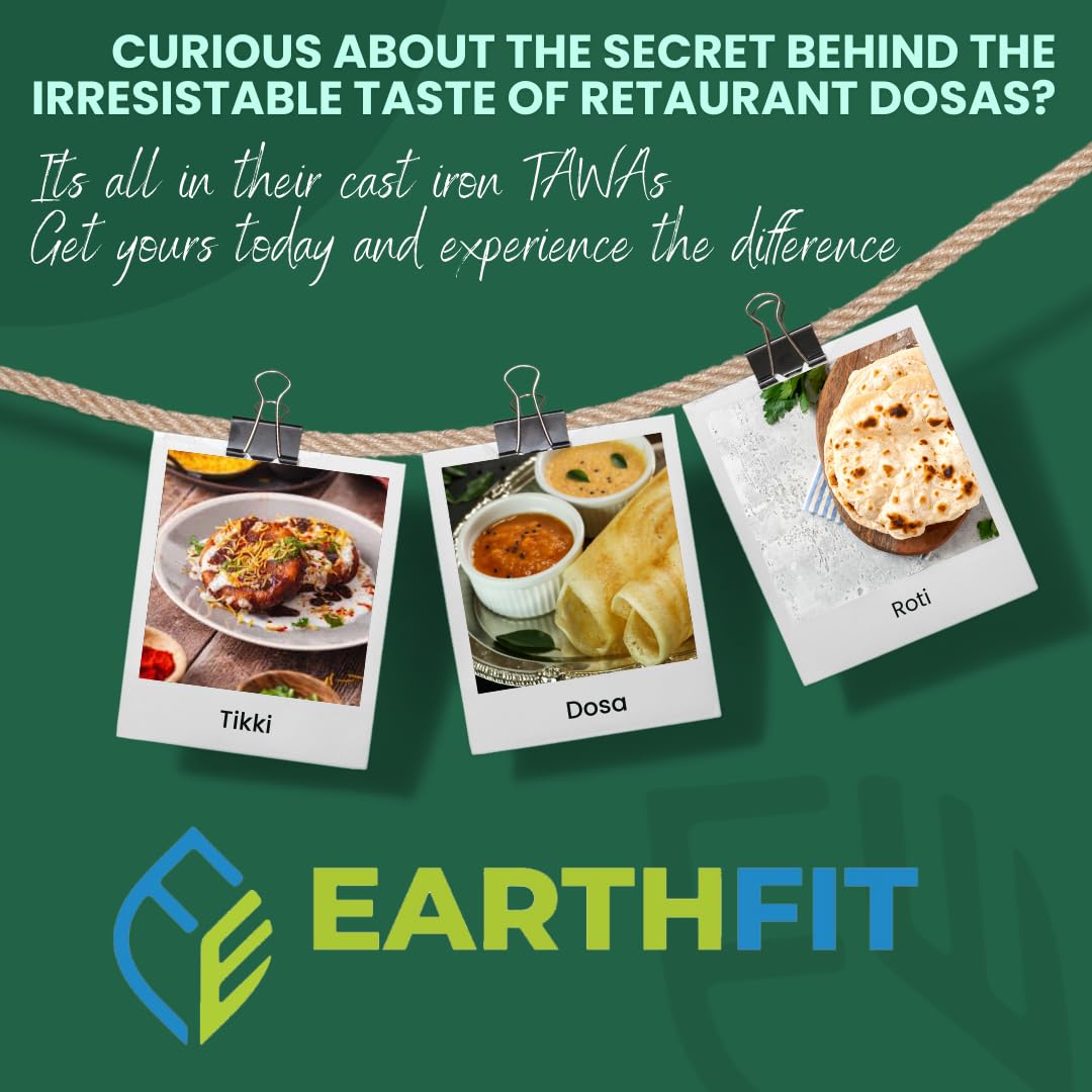 - Premium Quality Cast Iron Dosa Tawa - Crafted from high-quality cast iron, this EARTHFIT cast iron dosa tawa ensures excellent heat retention and even cooking. It's a perfect blend of durability and functionality.