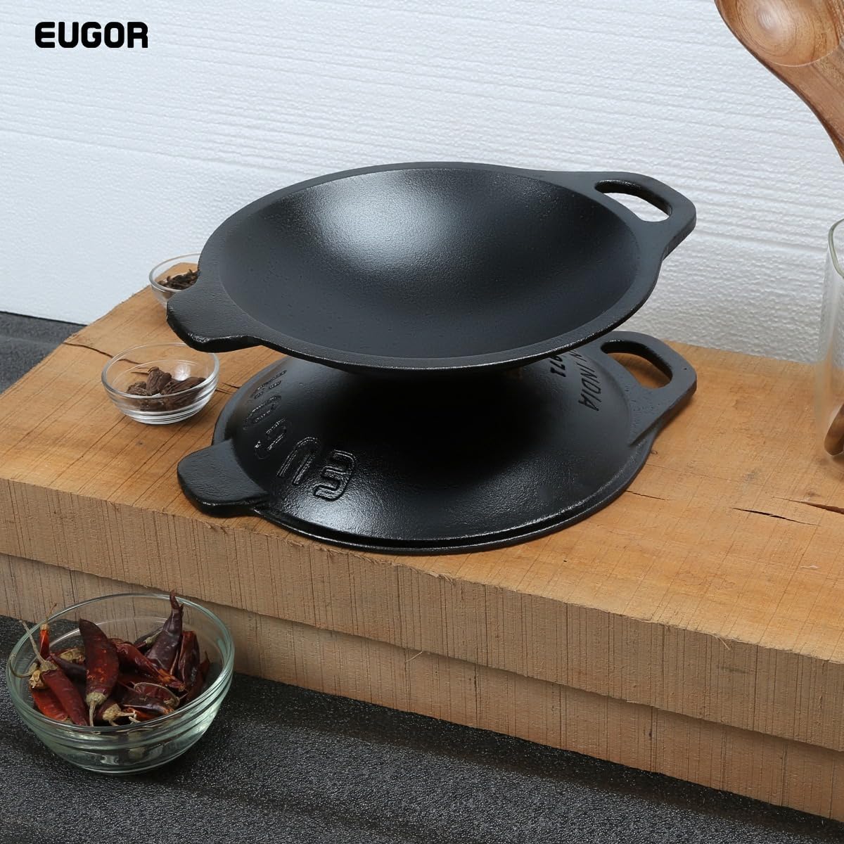 EUGOR from House of TheHealthyCliQ Cast Iron Appa Chatti/Appam Pan/Appam Patra/kallu Pre- Seasoned with Organic Cooking Oil (APPAM) - Black