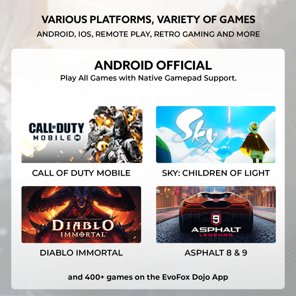 Exclusive Dojo App | Magnetic Hall Joysticks | Bluetooth v5.0 | Dual Vibration Motors | RGB Lighting and Backlit Controls | Keymap Mode (Android only)