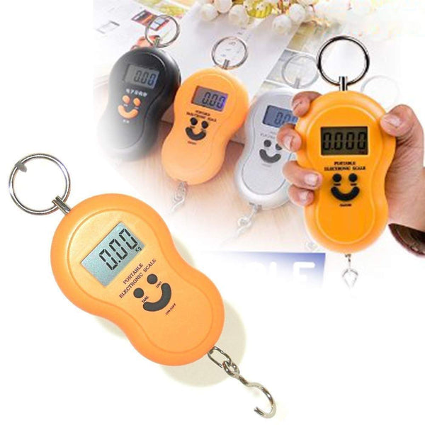 FEWORLD Hanging Digital Pocket Smiley Travel Luggage Weighing Scale This Ultra Portable digital weighing scale, it is extremely accurate. Use for Home, Kitchen, Wastage (Newspaper) disposal, offices, warehouses, laboratories and industries. Weigh Max Upto 50 KG. Large Blue Back-lit LCD Display makes for easy viewing. Handy portable and durable. Metal hook for ease in picking up & weighing. Tare function, auto zero resetting, manual switch off/auto switch off without operation. Digital weight scale with accuracy, handy, and durability.