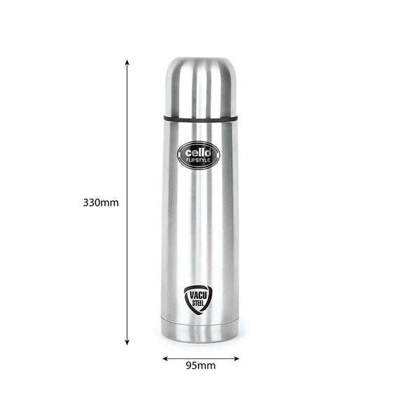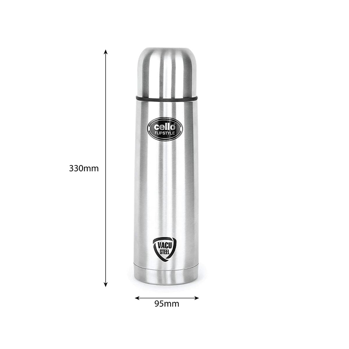 Introducing the Flipstyle Flask, a 1000ml Vacusteel Water Bottle by Cello with thermos steel technology, this Stainless Steel water bottle is designed for those on the go. It offers superior insulation performance, keeping your favorite beverages hot, cold, and fresh for hours, thanks to its double-walled vacuum design. Say goodbye to constant reheating and save on gas, effort, and time, especially handy for households with babies and kids. This reusable water bottle is not only leak-proof but also durable, unbreakable, and rust-proof. Made with 100% food-grade material, it ensures your drinks remain odour-free. Cleaning is a breeze with its convenient inner and outer steel, easily washed with a mild detergent or dishwashing liquid. Whether you're enjoying hot or cold drinks, the Flipstyle Flask simplifies pouring and drinking, and its lid doubles up as a spill-free cup for your convenience. Stay refreshed and hydrated effortlessly with the Flipstyle Flask, available with or without a jacket to suit your needs.