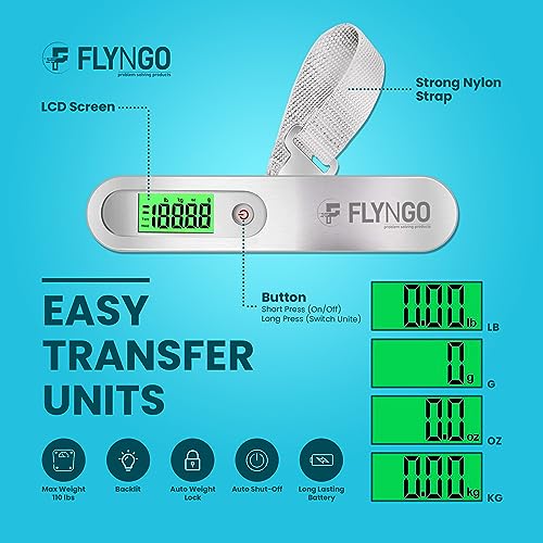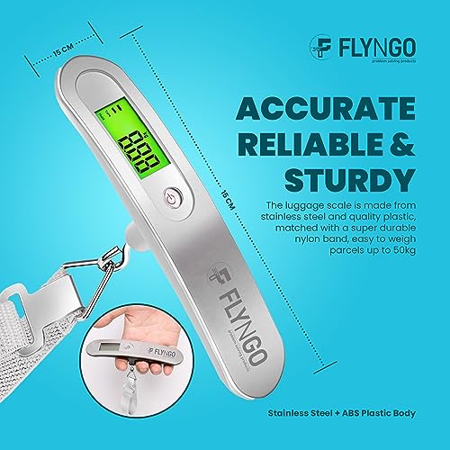FLYNGO Weight Machine For Luggage Weighing Scale For Luggage Capable Up To 50 Kg With Lcd Display Luggage Scale For Bags, Travel, Flights, Home, Shop, Gas Cylinder (A1), Silver