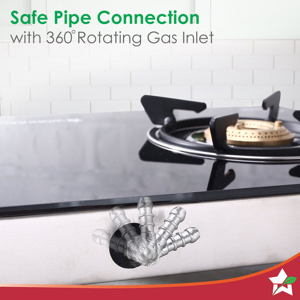 - Efficient Cooking: Highly efficient tri-pin brass burners provide fuel-saving and uniform heating, allowing you to cook faster and more efficiently. 3 burners (2 medium, 1 small) cater to different cooking needs.
