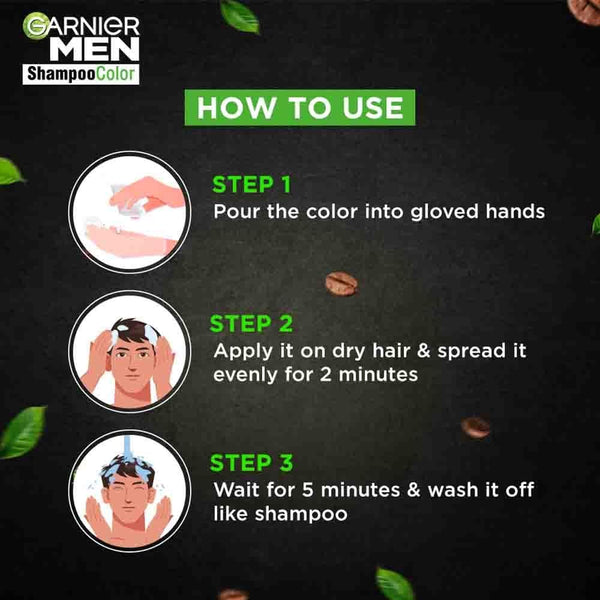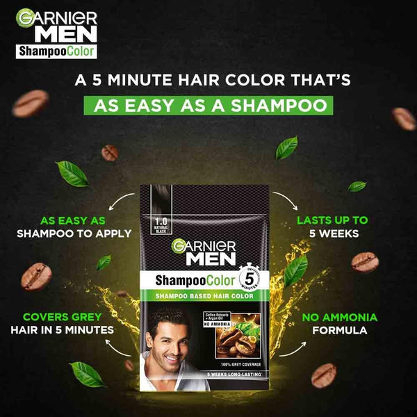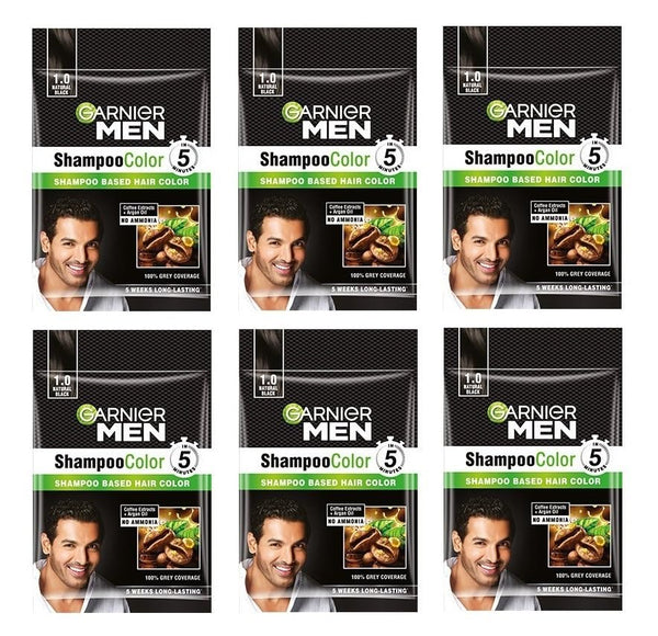 Garnier Men Shampoo Hair Color Shade 1.0 Natural Black (PACK OF 6)
